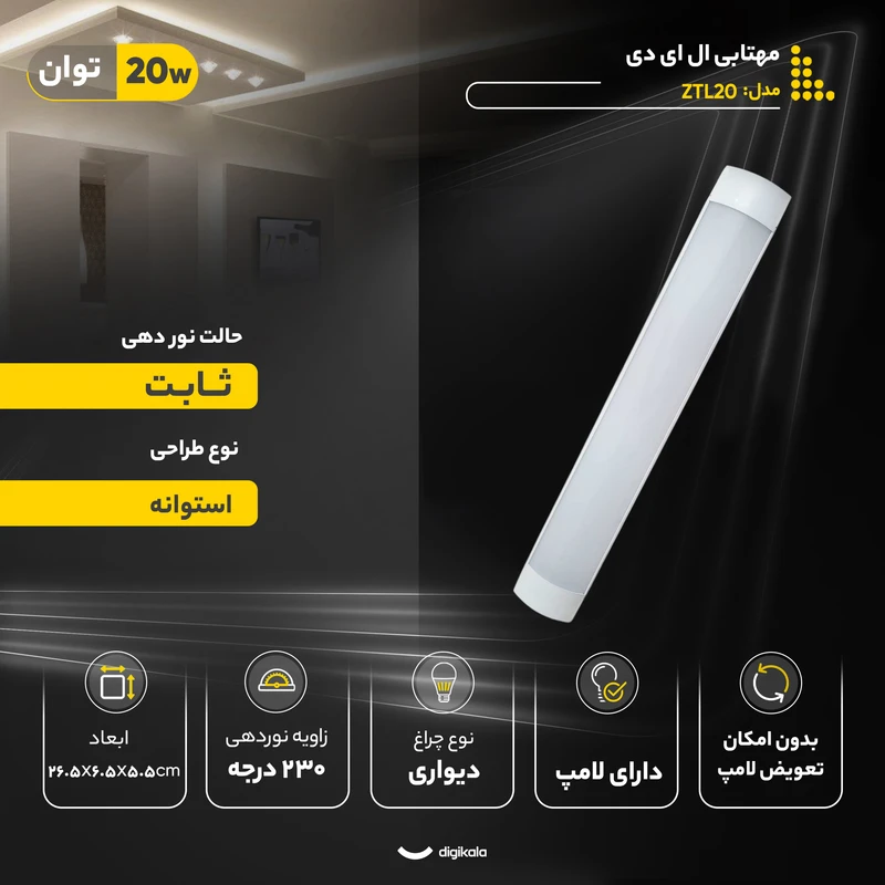 لامپ مهتابی ال ای دی 20 وات شاهچراغ پارسیان مدل ZTL20کدP14241